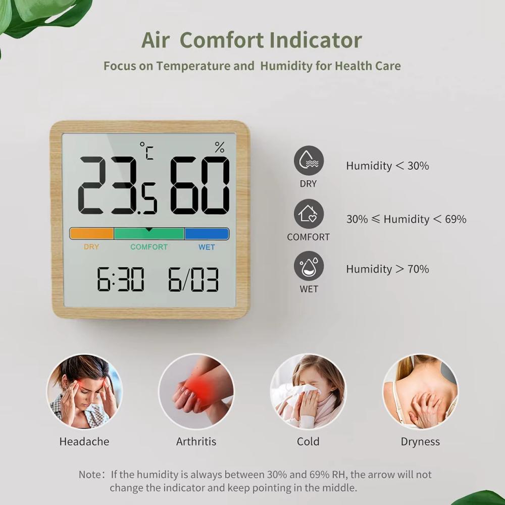 • ساعة رقمية قياس دقيق للحرارة والرطوبة كل 10 ثوانٍ.